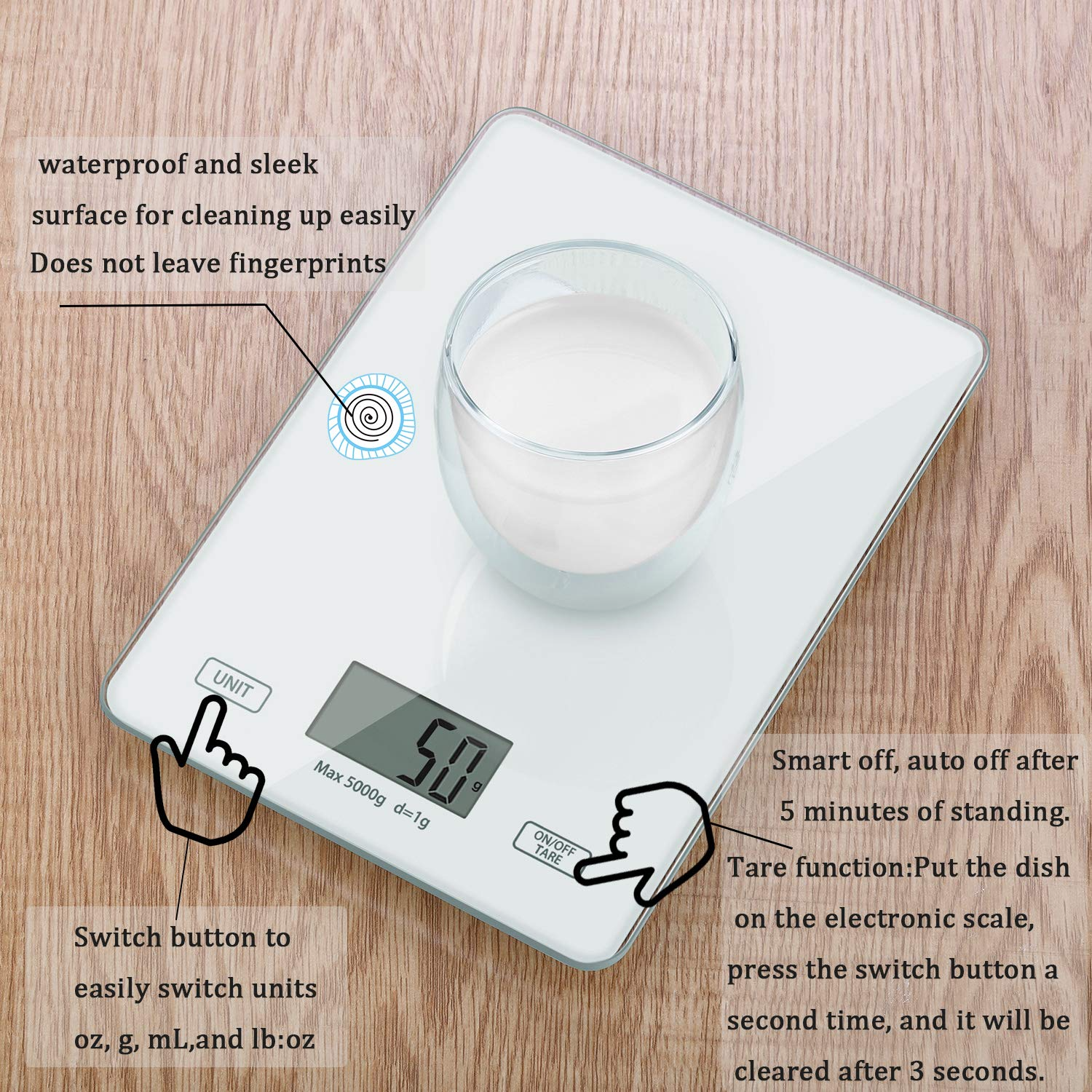 - Intelligent:Food Weight scale features easy Tare function. You subtract the weight of plate or container, making it easy to achieve accurate readouts of ingredients.